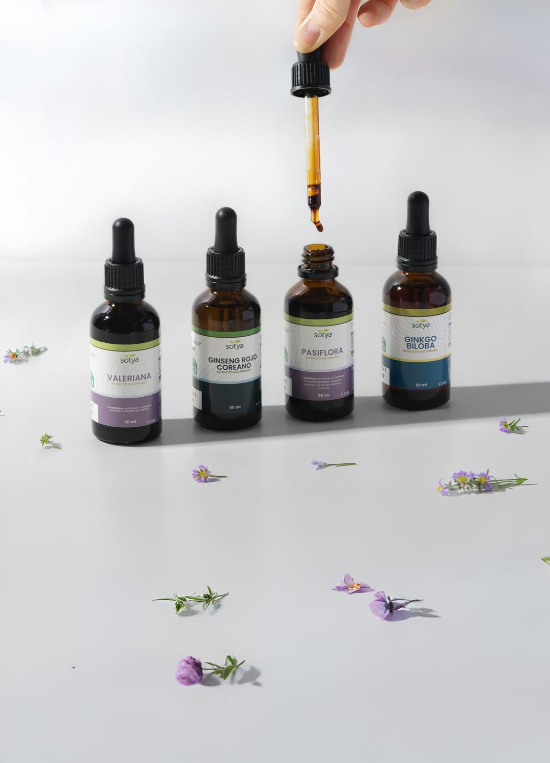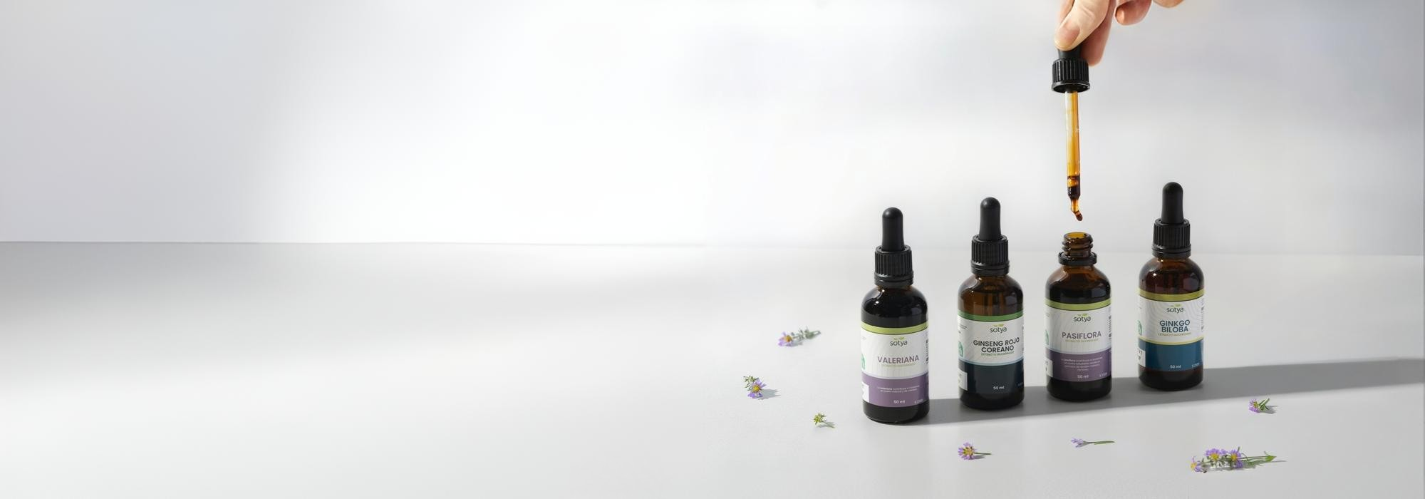 En SOTYA encontrarás extractos naturales de valeriana, ginkgo biloba, pasiflora, equinácea, cardo mariano, alcachofa depurativa, cola de caballo, ginseng rojo coreano, salvia, diente de león y castaño de indias. Todos en frasco de 50 ml con cuentagotas, elaborados con ingredientes de origen natural. Porque la salud se lleva desde dentro, gota a gota.