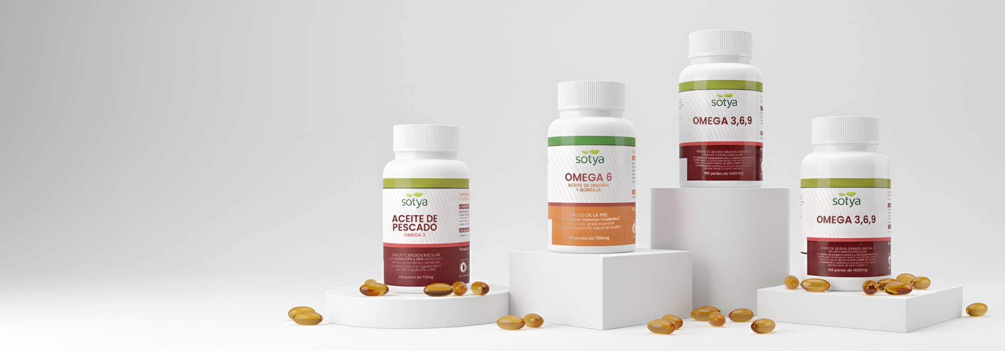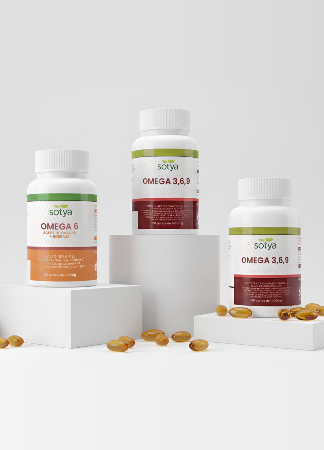 Los ácidos grasos omega forman parte de una alimentación equilibrada y pueden contribuir al bienestar general. En SOTYA encontrarás suplementos con omega 3, omega 6 y omega 9 elaborados a partir de ingredientes de calidad como aceite de pescado o aceites vegetales. Una forma práctica de complementar tu dieta y cuidar tu organismo desde dentro.