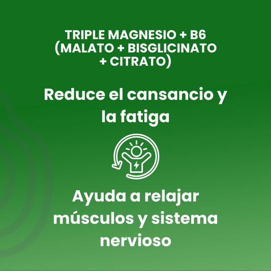 TRIPLE MAGNESIO + B6 (Malato + Bisglicinato + Citrato) 90 cápsulas vegetales de 820mg