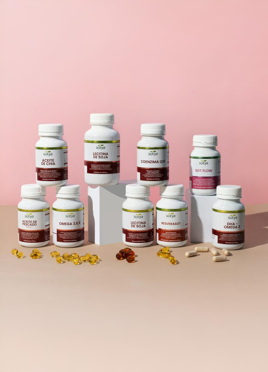 El Omega 3 6 9, la lecitina de soja, la coenzima Q10 y el ajo macerado son algunos de los suplementos naturales para el colesterol y la salud del corazón más reconocidos. En SOTYA los encontrarás en perlas o cápsulas vegetales, con ingredientes de origen natural y sin artificios. Porque cuidar tu sistema cardiovascular es una decisión que se toma cada día, desde dentro.