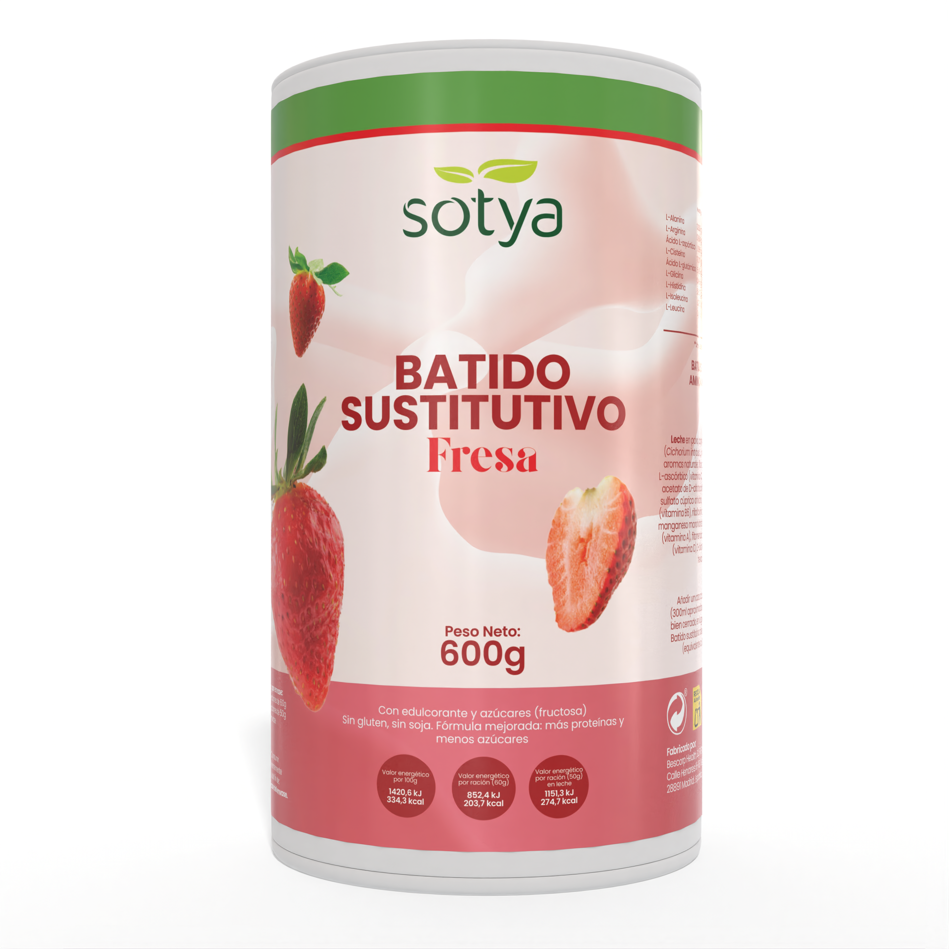 Meal replacement shake for weight control. Made from skimmed milk, milk proteins, vitamins and minerals. This delicious shake with dehydrated strawberry and natural flavours is mixed in semi-skimmed milk and provides all the nutrients your body needs to replace a meal in a balanced way. It can also be taken as a snack. Of course, we always recommend following a healthy diet, an active lifestyle and drinking plenty of water to achieve your health and wellbeing goals. It is a fresh flavour to drink even on the hottest summer days.