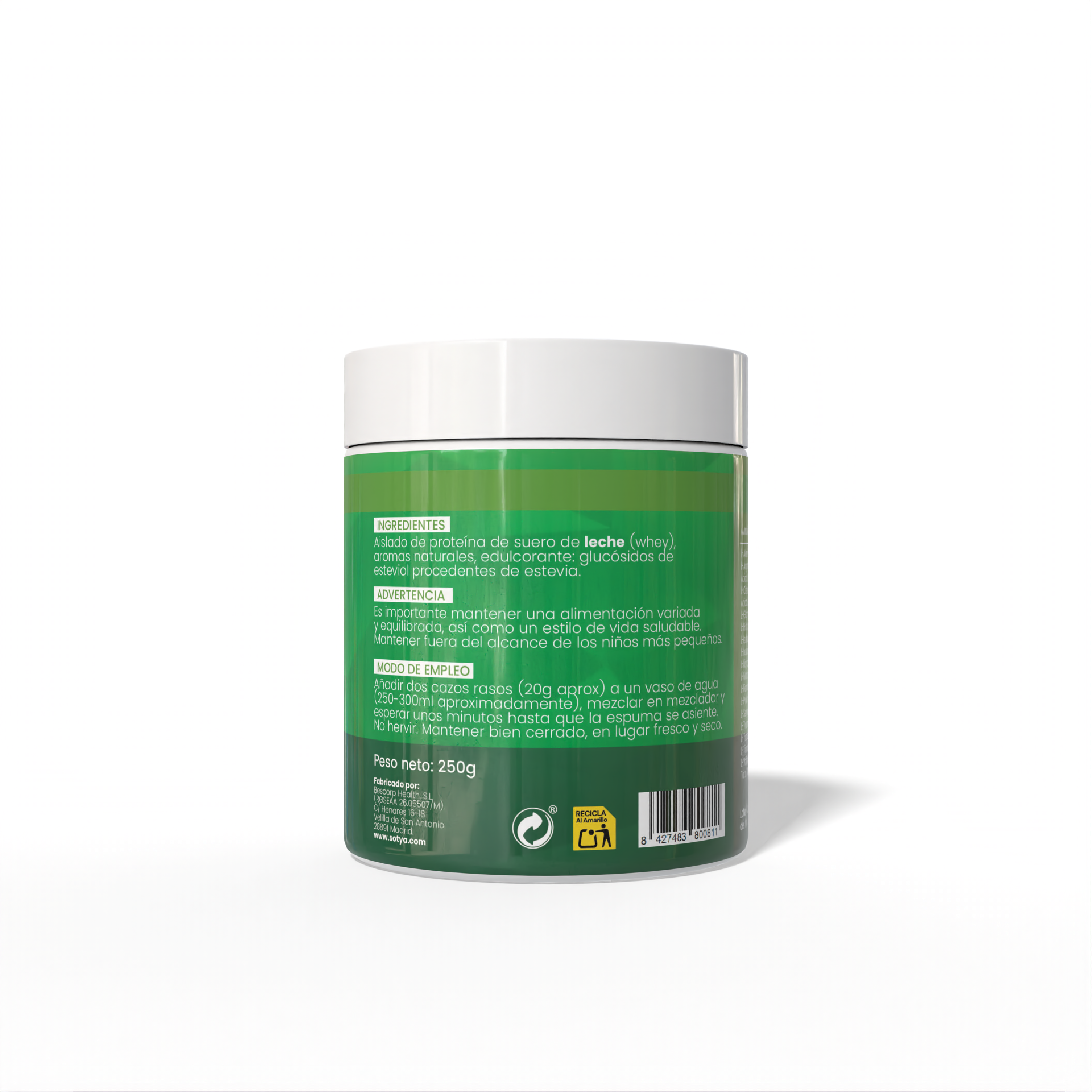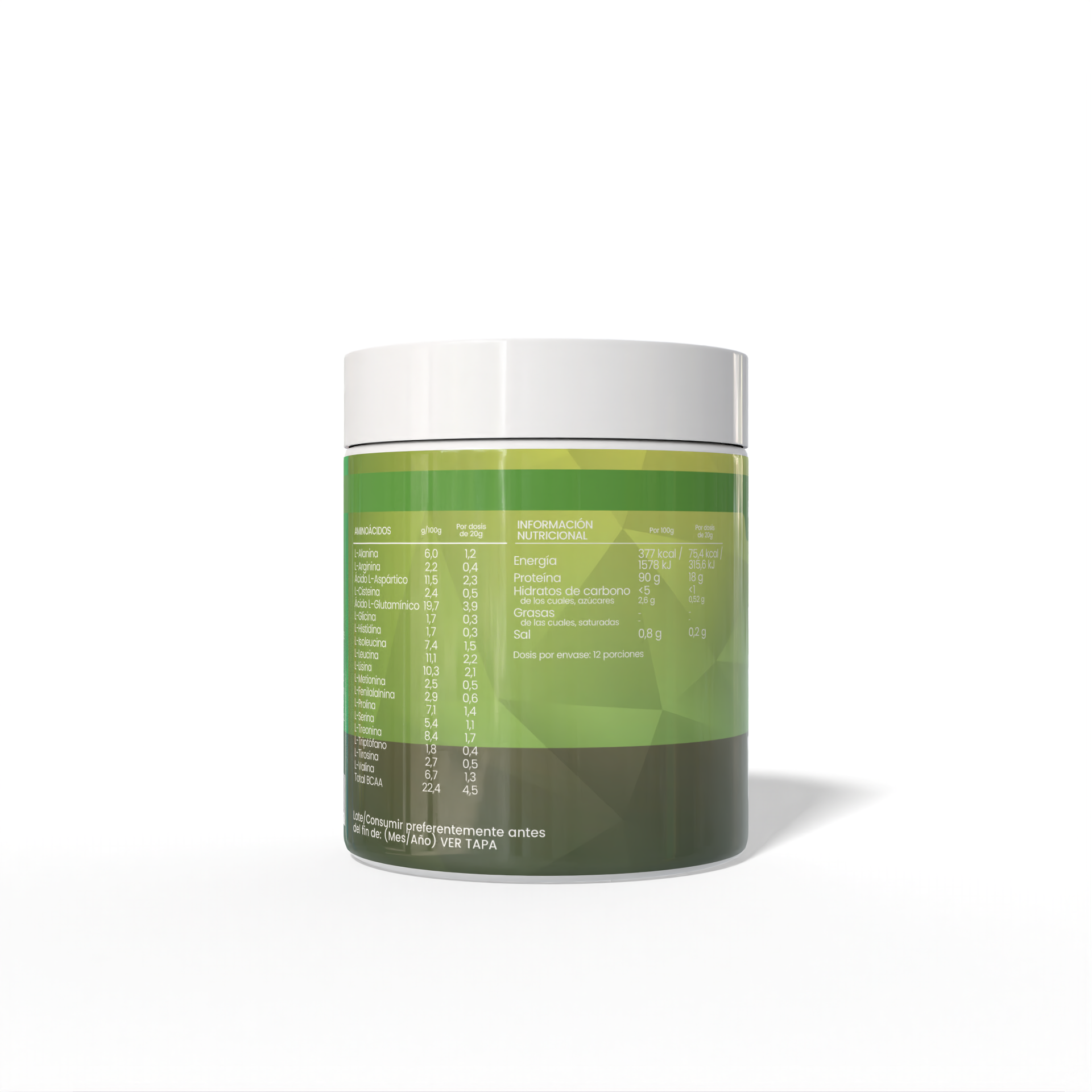 Bajo en azúcares. Edulcorado con estevia. 90% proteína / 22,4 g BCAA / < 0,5% lactosa