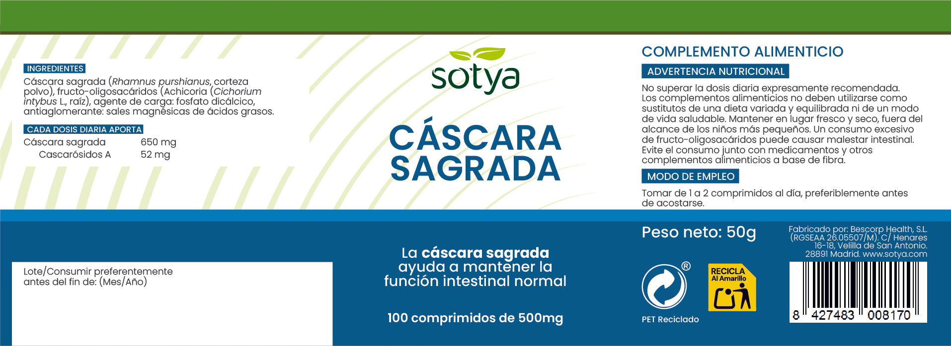 Cáscara sagrada 100 comprimidos de 500mg