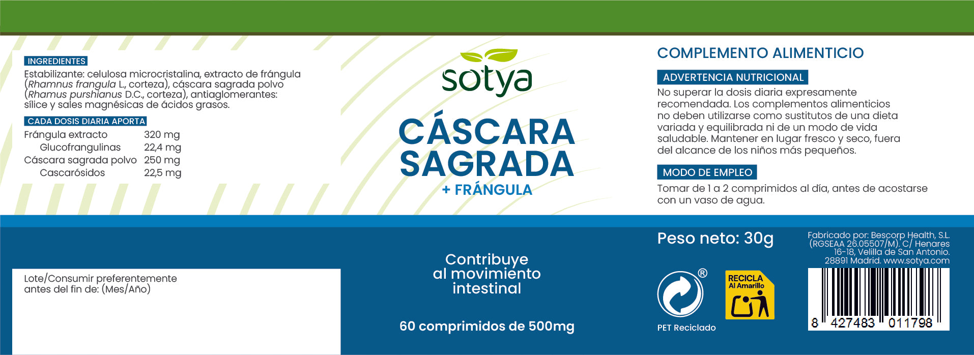 Cáscara Sagrada + Frángula 60 comprimidos de 500mg