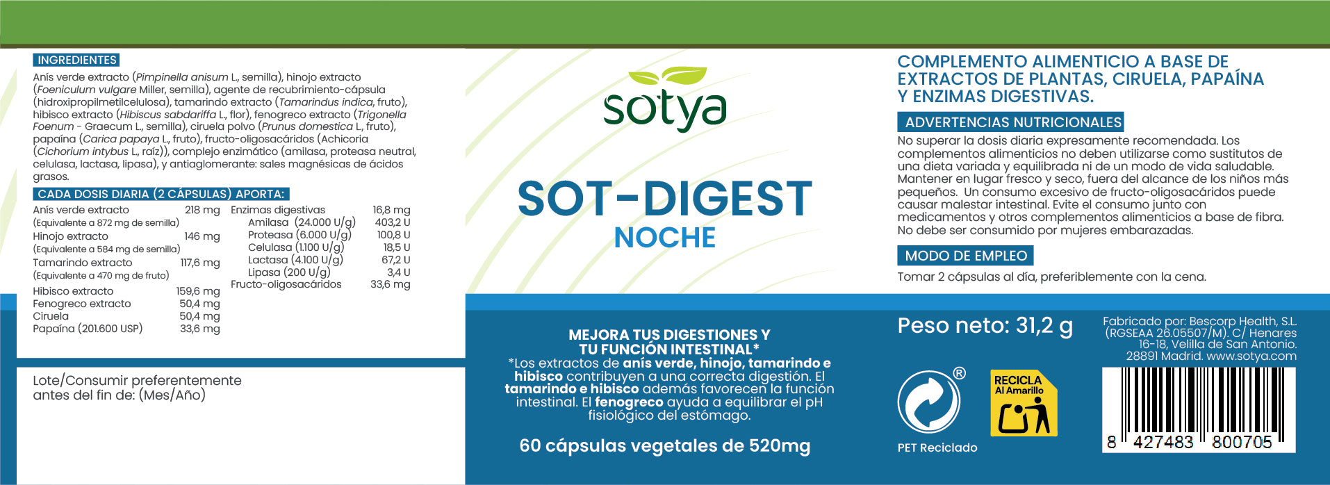 SOT-DIGEST noche 60 cápsulas vegetales de 520mg