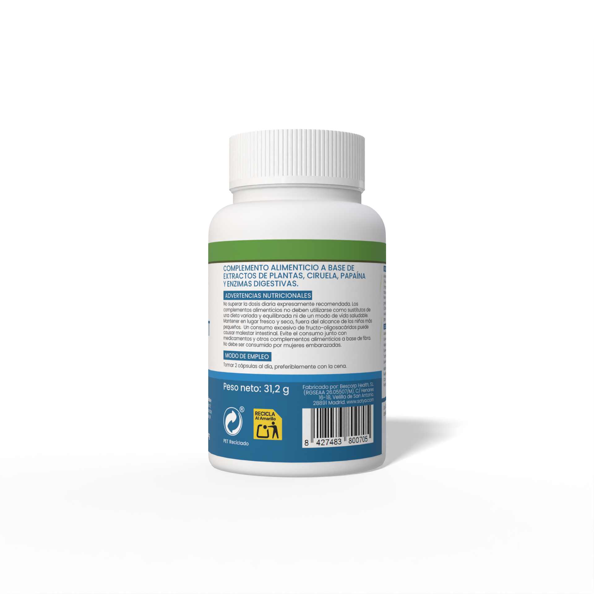 No superar la dosis diaria expresamente recomendada. Los complementos alimenticios no deben utilizarse como sustitutos de una dieta variada y equilibrada ni de un modo de vida saludable. Mantener en lugar fresco y seco, fuera del alcance de los niños más pequeños. Un consumo excesivo de fructo-oligosacáridos puede causar malestar intestinal. Evite el consumo junto con medicamentos y otros complementos alimenticios a base de fibra. No debe ser consumido por mujeres embarazadas.